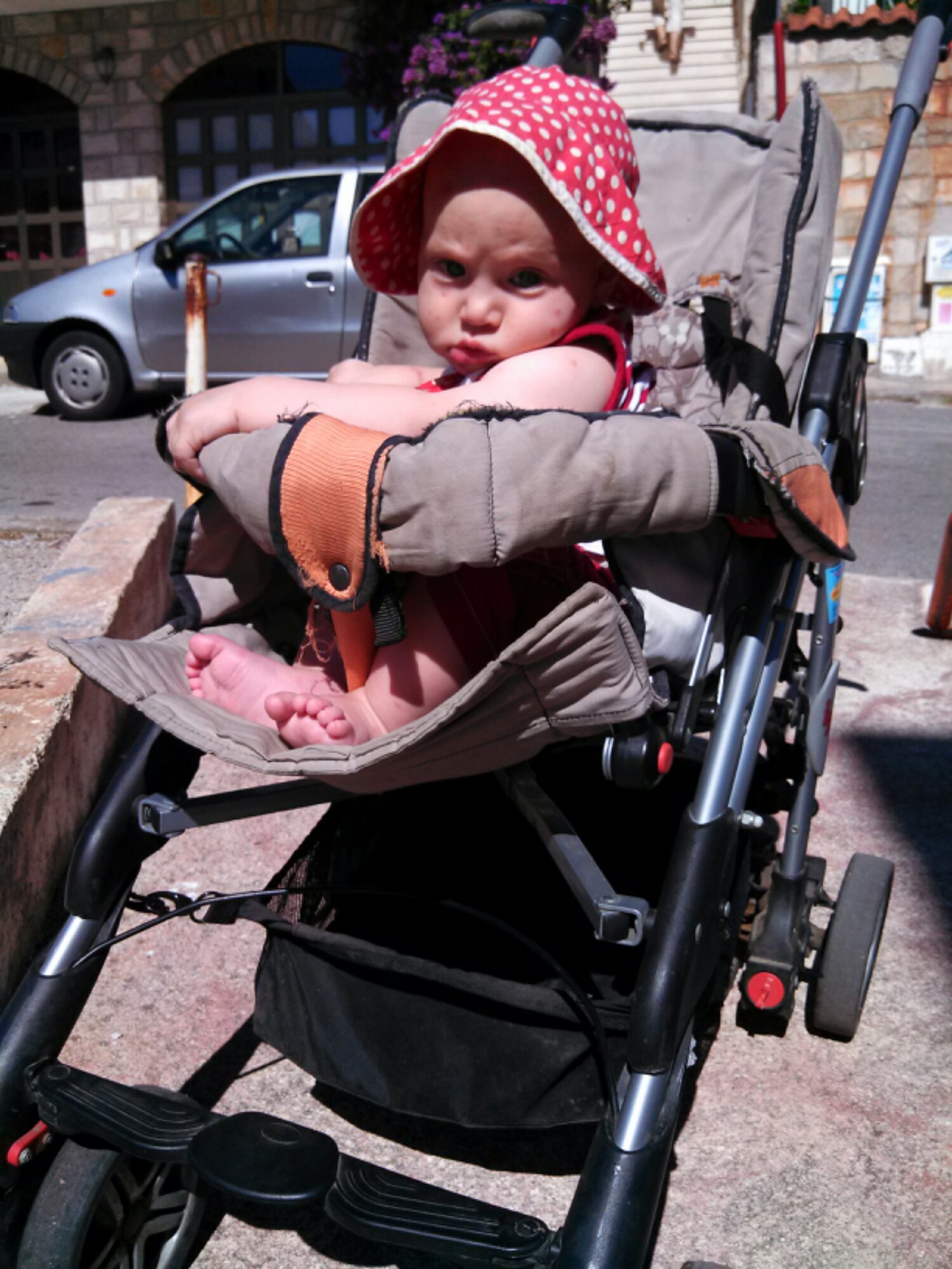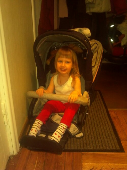 Это уже стало традицией, доставать Машу из коляски в конце гулянья (если она не спит, очень крепко). Маша радостно улыбается миру, пытается слезть с рук и побежать за другими детьми.
